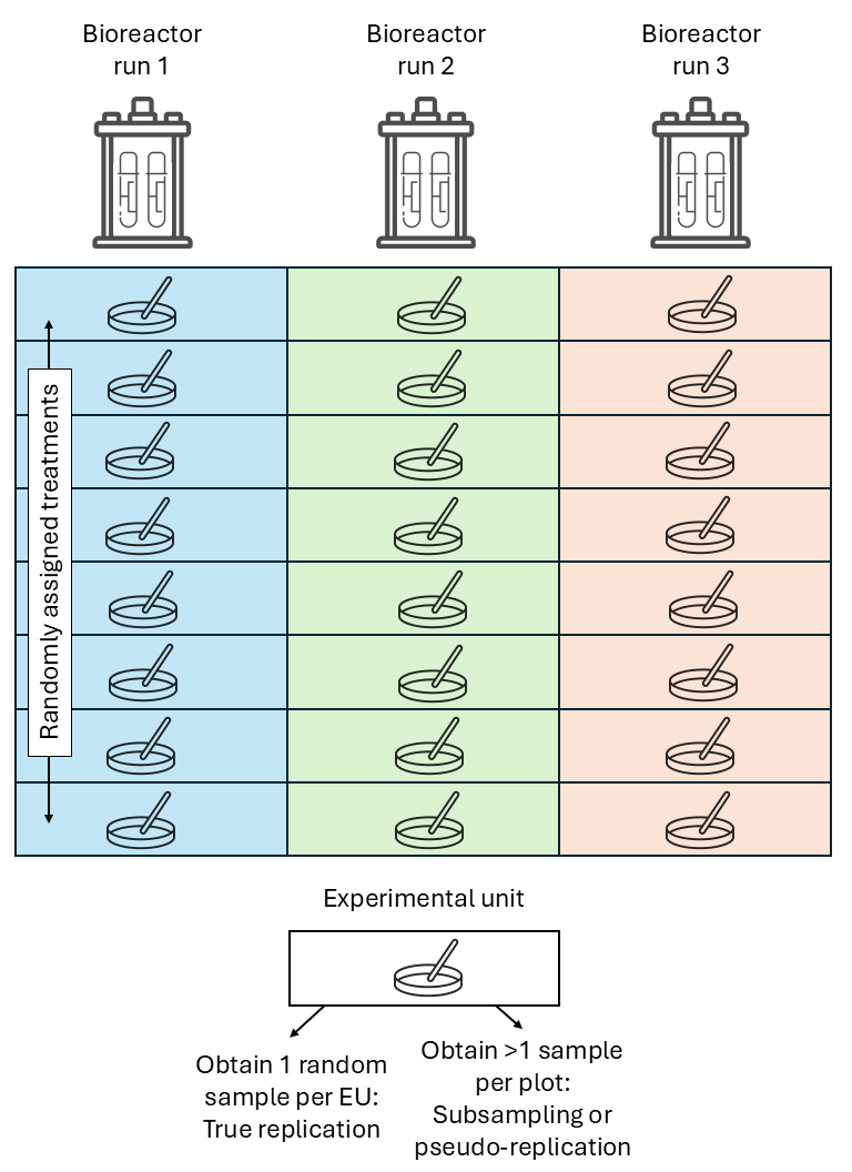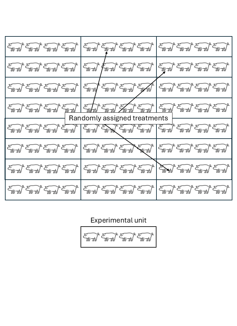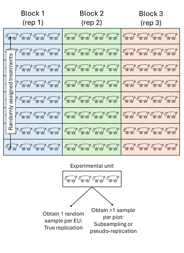 - Experimental unit (EU): smallest entity to which a treatment is independently assigned.