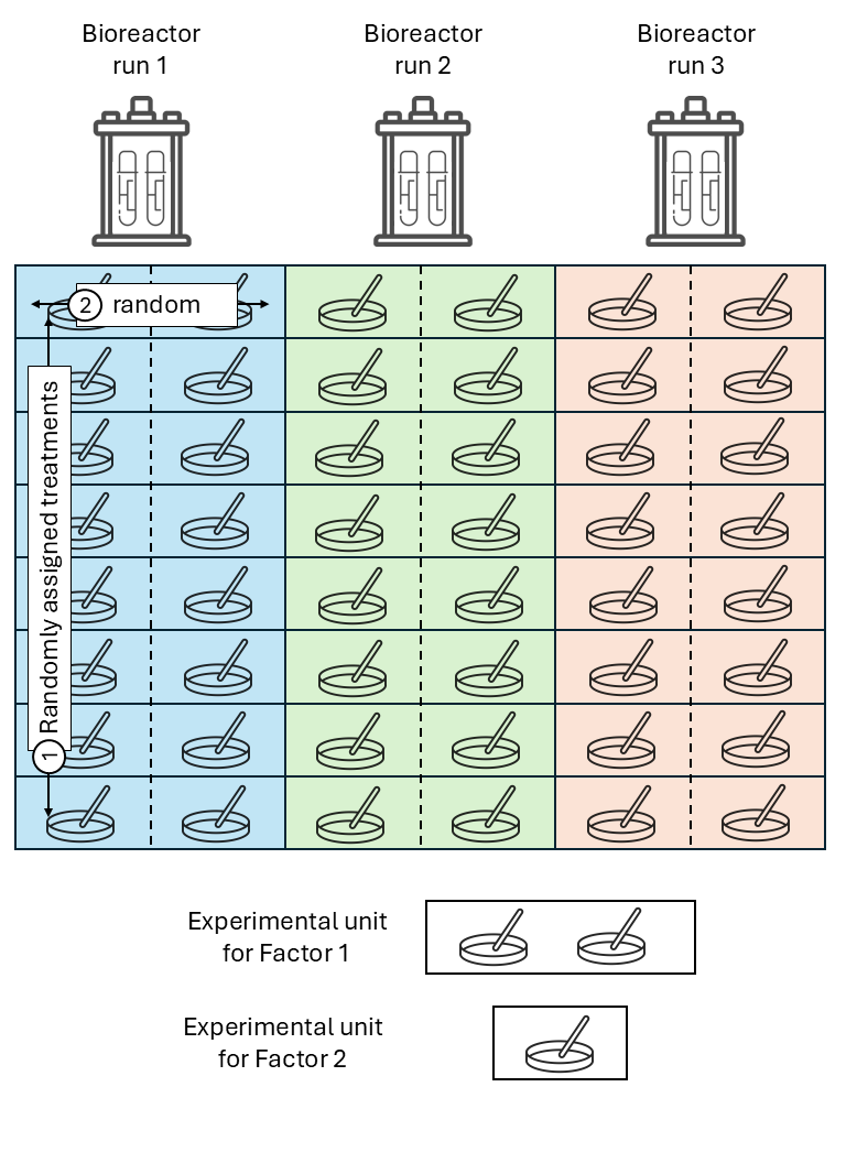 Split-plot designs are hierarchical types of designs with at least two treatment factors, where the experimental unit for one treatment contains multiple experimental units of another treatment factor. The reason for this type of designs often go back to practical limitations for the application of some treatment factor (e.g., agricultural machinery that imposes the experimental unit size), making split-plot designs more convenient.