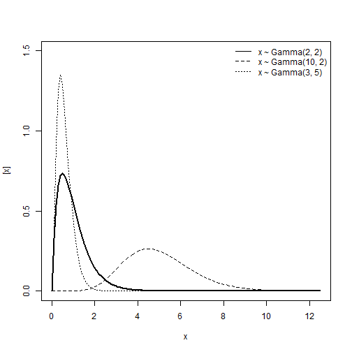 \[y \sim Gamma(\alpha, \; \beta)\] \[E(y) = \frac{\alpha}{\beta} \\ Var(y) = \frac{\alpha}{\beta^2}\]Support: