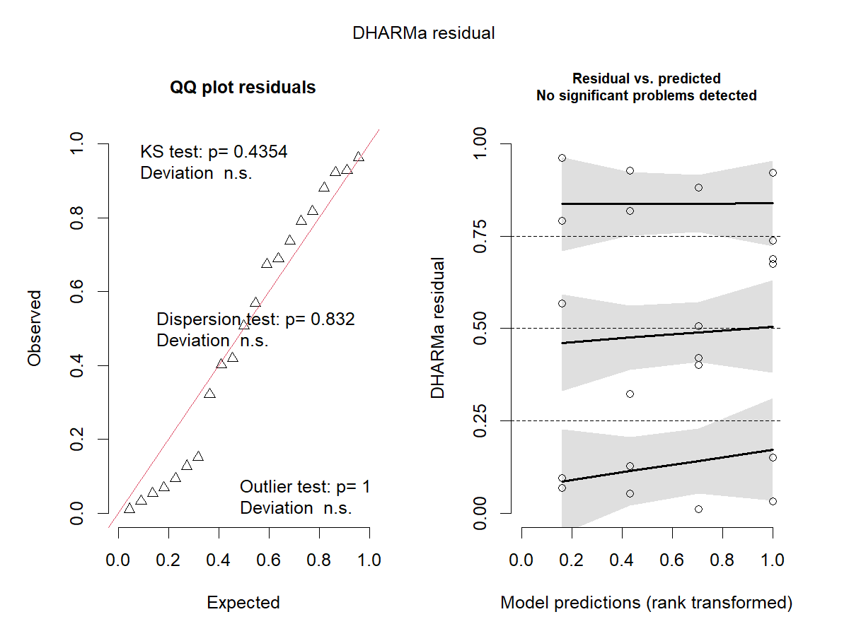 res_sim2 <- simulateResiduals(m2, plot = TRUE)